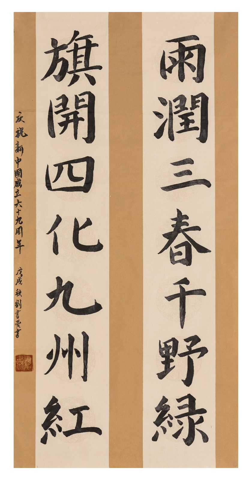 優(yōu)秀獎《雨潤三春千野綠 旗開四化九州紅》劉書愛